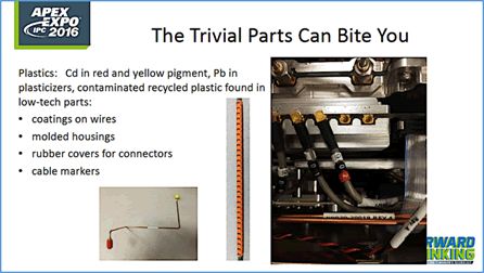 欧盟法规如RoHS(有害物质限制标准)、REACH (注册,评估,授权和限制的化学品标准);美国Dodd Frank Law(涉及冲突矿物);和加利福尼亚65号提案(目前在列清单超过800个化学品必须标记)等法规的颁布已经影响生产、工艺、加工成本、以及提供互连零部件供应链的资源等。